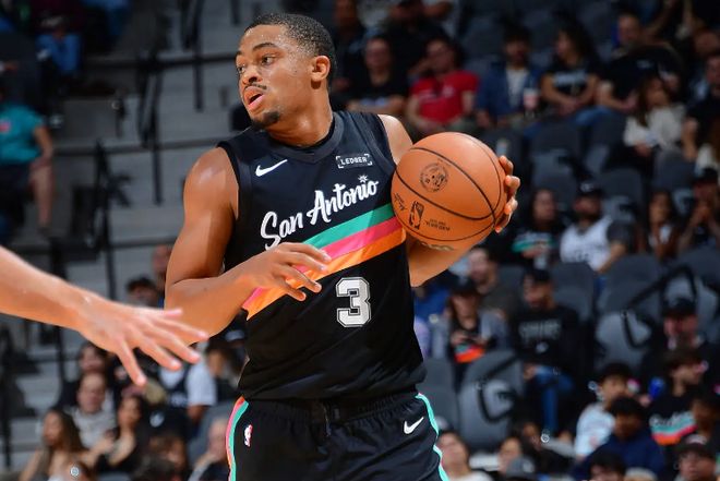 本场比赛中,马刺的替补侧翼球员凯尔登-约翰逊(Keldon Johnson)的表现非常突出。约翰逊全场出场32分08秒,投篮12中9,三分线外5中3,罚球5中4,得到了25分7篮板2助攻1抢断的数据,还有2次失误和2次犯规,正负值为+8。约翰逊在进攻端大杀四方,展现出了全面的得分能力,他的突破犀利,他的终结能力出色,他在外线投篮方面的稳定性也是相当突出的。除此之外,约翰逊在防守端的表现也是值得肯定的,同样是能够起到一些作用。总体来看,约翰逊在哦本场比赛中算是成功扮演了超级第六人的角色,他的挺身而出帮助球队第二阵容稳住了局面并且建立起了一些优势。
